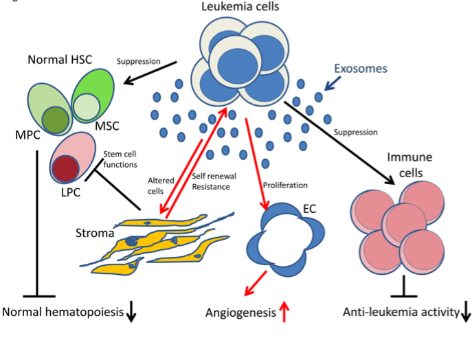 無論是在正常生理?xiàng)l件下還是病理?xiàng)l件下,所有細(xì)胞都會(huì)由胞內(nèi)體產(chǎn)生小囊泡(30-150nm),被稱為外泌體。外泌體能夠從供體細(xì)胞向受體細(xì)胞傳遞分子和遺傳物質(zhì),是分子的細(xì)胞間轉(zhuǎn)移的載體。外泌體介導(dǎo)的蛋白質(zhì)或基因(RNA、miRNA、DNA)的轉(zhuǎn)移導(dǎo)致受體細(xì)胞功能的重新編程。外泌體攜帶并傳遞對(duì)人體健康至關(guān)重要的一些信息,并參與一些病理過程,包括惡性轉(zhuǎn)化。在造血系統(tǒng)內(nèi),外泌體維持骨髓腔室細(xì)胞和遠(yuǎn)處組織部位細(xì)胞之間的通信。在血液惡性腫瘤中,腫瘤細(xì)胞分泌的外泌體( tumor-derived exosomes,TEX)重編程骨髓環(huán)境,抑制抗白血病免疫,介導(dǎo)耐藥性和干擾免疫治療。TEX也被視為對(duì)抗血液腫瘤惡性進(jìn)展的有希望的生物標(biāo)志物和潛在的治療靶點(diǎn)。TEX對(duì)血液腫瘤惡性轉(zhuǎn)化過程中的幾乎所有方面都有作用,所以目前研究人員對(duì)其生物學(xué)機(jī)制包括負(fù)責(zé)信息傳遞的機(jī)制及其在腫瘤逃脫宿主免疫系統(tǒng)中的作用產(chǎn)生了極大的研究興趣。在這篇綜述中,來自美國匹茲堡大學(xué)癌癥研究所和匹茲堡大學(xué)醫(yī)學(xué)院的研究人員對(duì)血液腫瘤分泌的外泌體的作用進(jìn)行了探討。