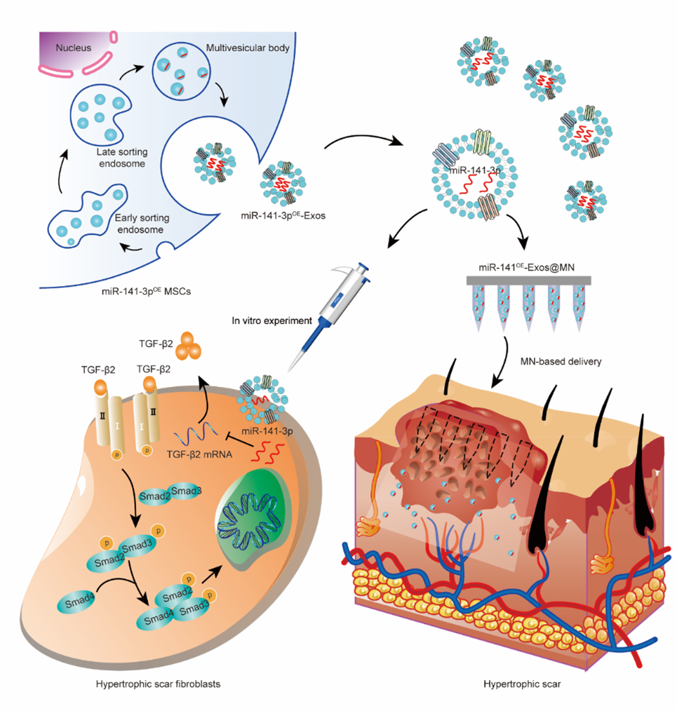 外泌體資訊網(wǎng) SMALL|張翠萍研究員、付小兵院士以及李海紅研究員:miR-141-3p功能化外泌體負(fù)載于可溶性微針用于治療增生性瘢痕