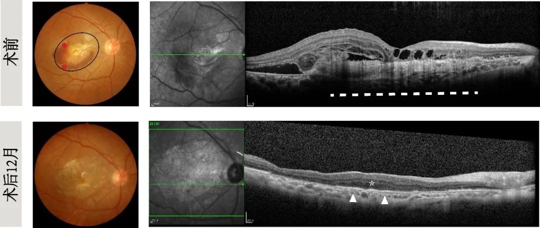 視力恢復(fù)方面,60%的患者術(shù)后視力提高超過10個 ETDRS 字母(視力測試單位),30%(3/10)提高超過20個字母。無術(shù)中出血的患者平均視力提高12個字母,遠超術(shù)中出血的3個字母,顯示術(shù)中無出血對結(jié)果至關(guān)重要。
